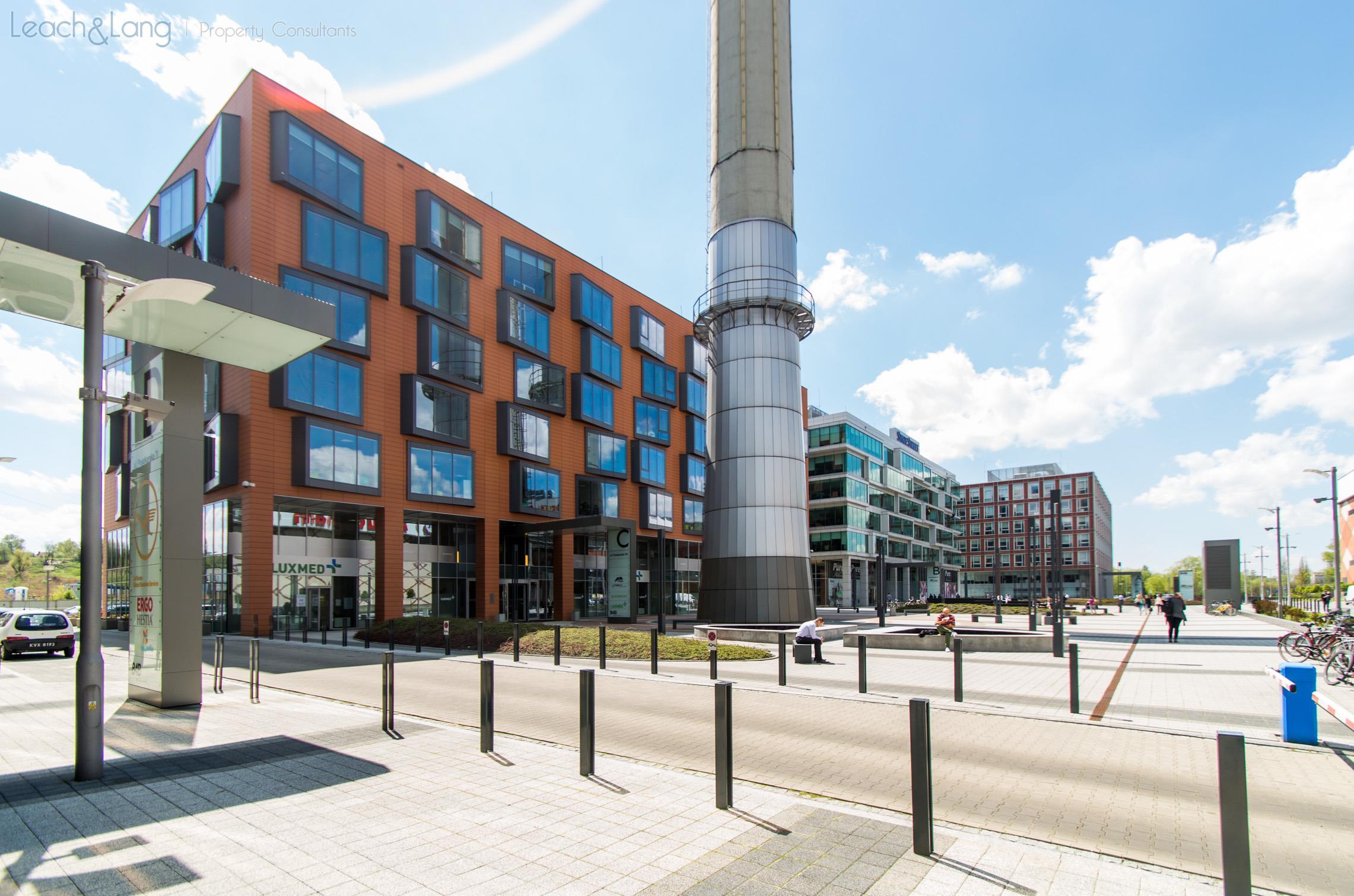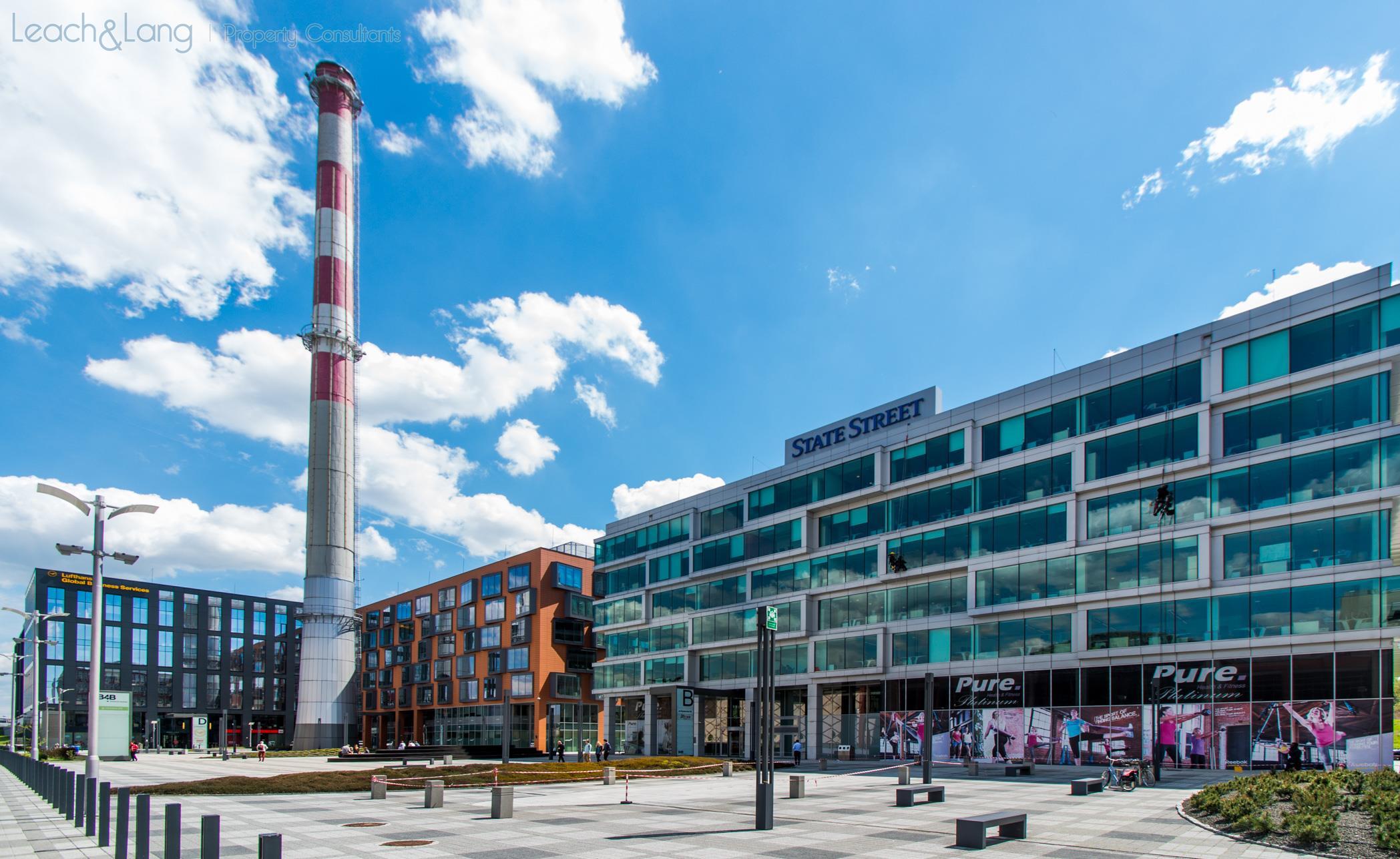 Plac o powierzchni ok. 6.600 m, z fontannami, zielenią, ławkami i dekoracyjnym oświetleniem, zapewnia komunikację pieszą pomiędzy centrum handlowym a biurowcami, stanowi miejsce spotkań oraz odpoczynku. Wyróżniającym się elementem jest poprzemysłowy, 100-metrowy komin, przypominający o przeszłych dziejach tego miejsca.