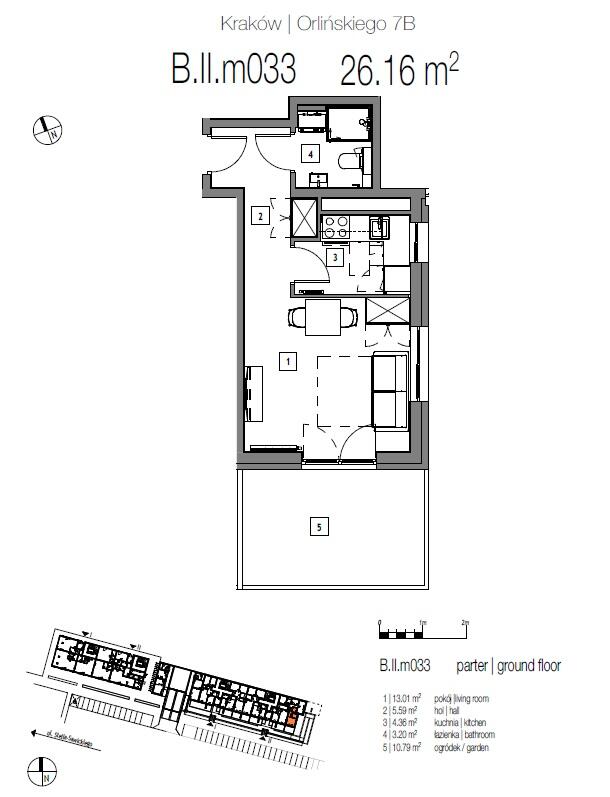 Przedmiotem sprzedaży jest wykończone i umeblowane 1-pokojowe mieszkanie z osobną kuchnią i wyjściem na ogródek o pow. 26,16 m2 położone na parterze w nowym bloku z windą na ul. Orlińskiego (Czyżyny).