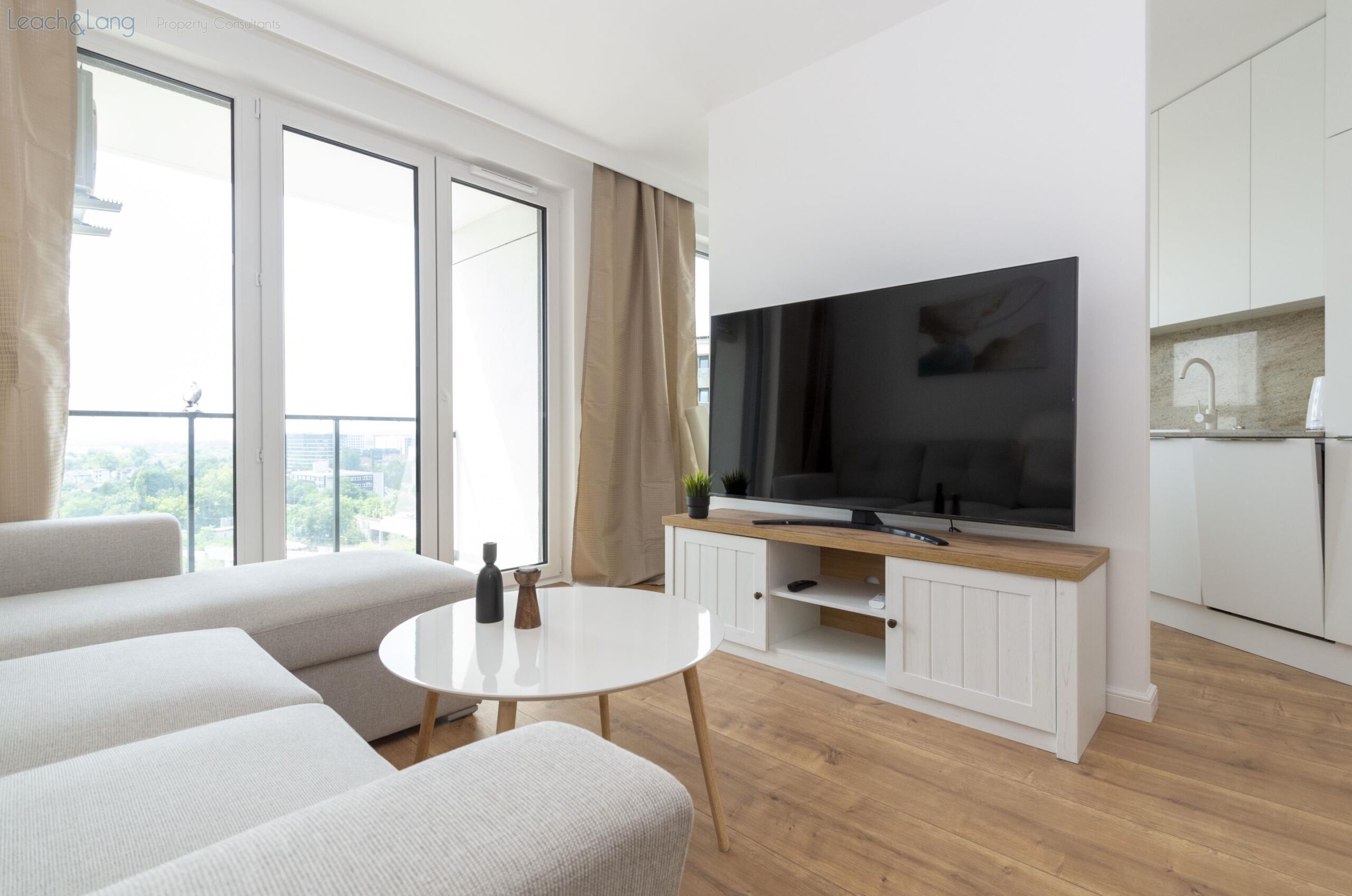 Leach & Lang Property Consultants prezentuje eleganckie mieszkanie na wynajem, zlokalizowane na 13 piętrze nowoczesnej inwestycji przy ul. Łaszkiewicza.
