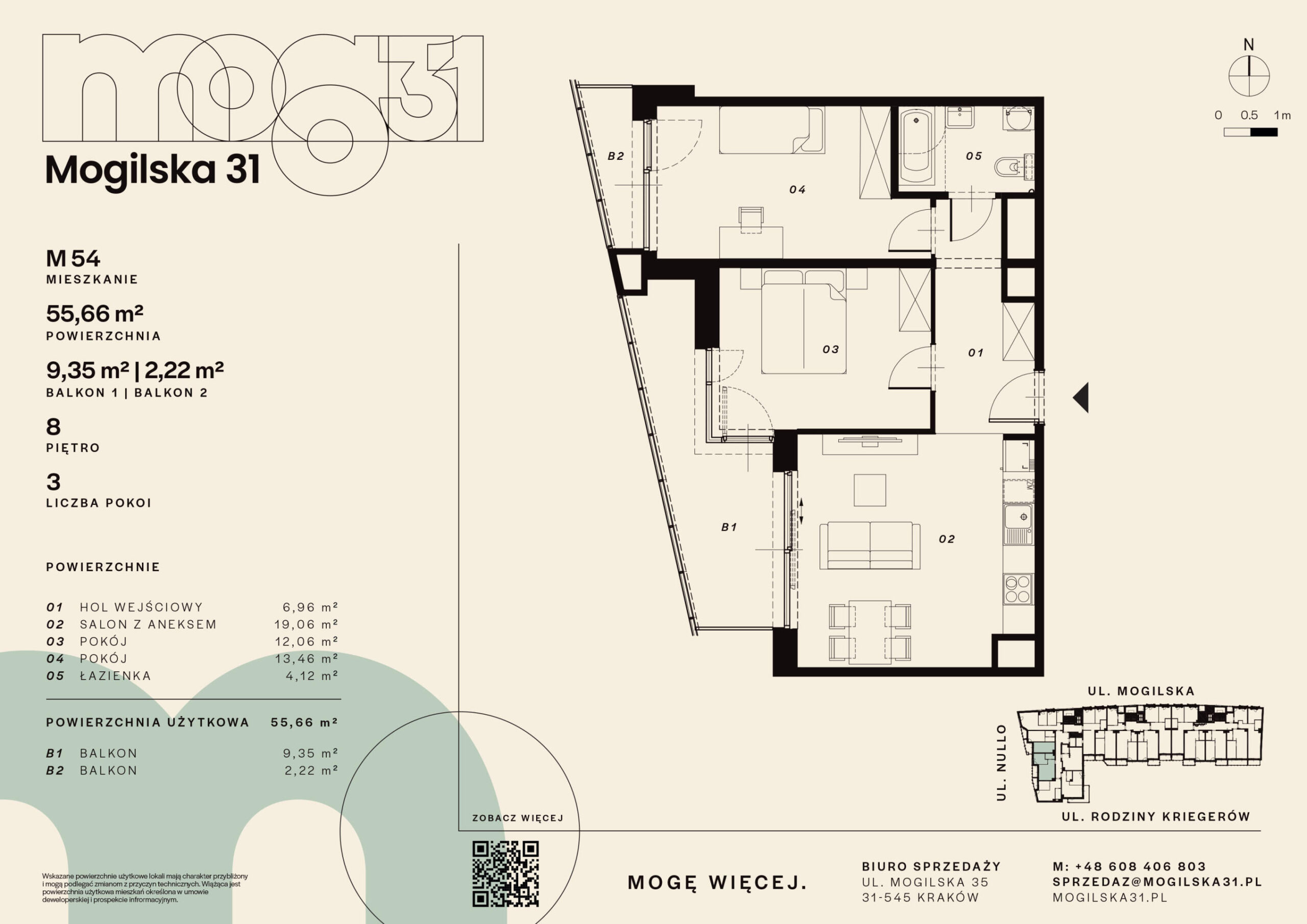 Lokalizacja przy ul. Mogilskiej zapewnia szybki dojazd do centrum miasta oraz wygodny dostęp do punktów handlowo-usługowych, biur i terenów rekreacyjnych. Jest to dynamicznie rozwijający się obszar Krakowa, chętnie wybierany zarówno do zamieszkania, jak i pod inwestycję.