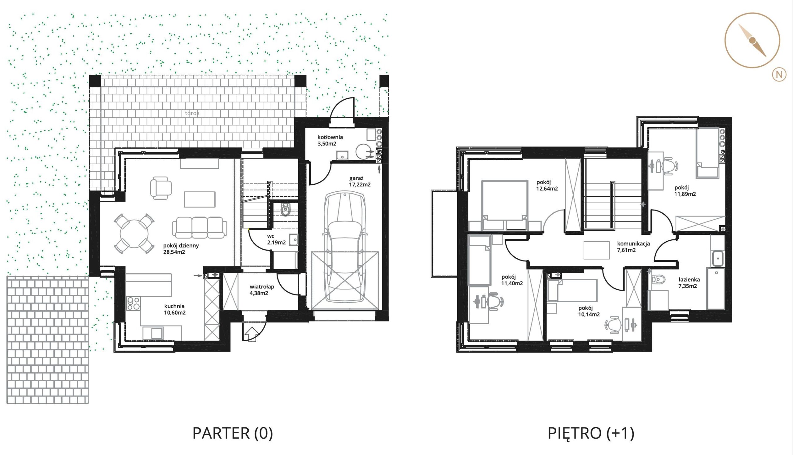 Dom B6 o powierzchni 125,64 m2 znajduje się na ok. 3-arowej działce i składa się z: