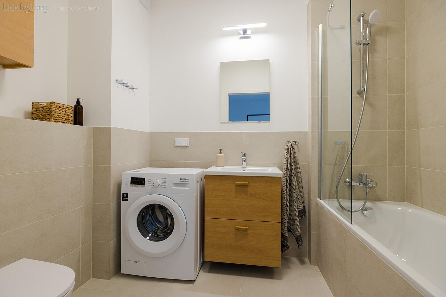 - łazienki z wanną, wyposażoną także w pralkę,